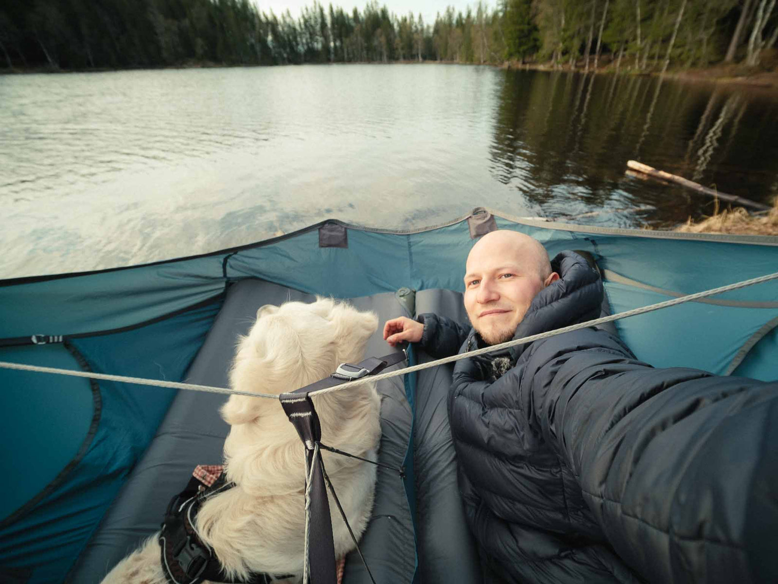 Norwegian-designed double comfort! The only well-functioning double hammock on the market! Travel with your own double bed and sofa.
